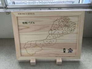 夏休み前に、松阪市制20周年記念事業として松阪の木「ヒノキ」の間伐材で作成された「まつさかパズル」をいただきました。