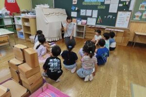 年長組は2学期になったので新しい当番のグループを決めていました。