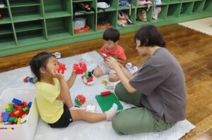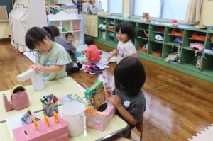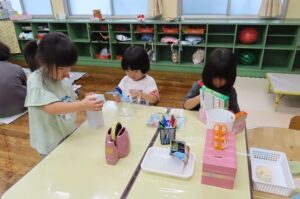 年中・年少組は、製作をしたりブロックで遊んだりしました。