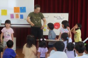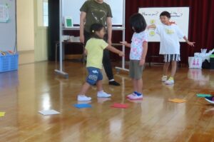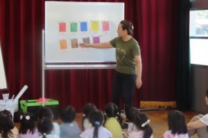 ホーム > 日々の活動の様子 / 伊勢寺幼稚園 英語で遊ぼう④(9/9) まず、英語であいさつをしました。 今日のテーマは『いろ』です。 ゲームをしながら英語にふれました。 友だちが選んだ色を当てるゲームもしました。 最後に今日学んだ色の振り返りをしました。 シェアする Twitter でシェア はてなブックマークに保存 LINE でシェア Facebook でシェア Pocket に保存 Feedly で購読 関連投稿 日々の活動の様子 / 伊勢寺小学校 11月17日(月) 2024年度 / 日々の活動の様子 / 伊勢寺幼稚園 第7回英語で遊ぼう(12/10) 日々の活動の様子 / 伊勢寺幼稚園 水遊び(7/1) 日々の活動の様子 / 伊勢寺小学校 2年生が親子行事でヨガをしました。 日々の活動の様子 / 伊勢寺小学校 4年生が社会見学に行きました。11月19日 2024年度 / 日々の活動の様子 / 伊勢寺小学校 令和6年伊勢寺フェスティバルプログラム 前の投稿 9月8日(月) 次の投稿 9月9日(火)