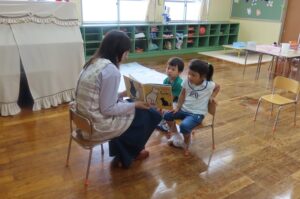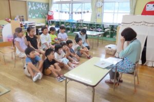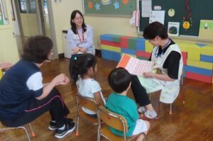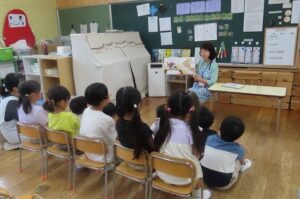 年中組は紙芝居『ごきげんのわるいコックさん』と絵本『くじら』『おかおあらうのみーせて』でした。
