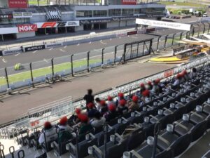 コースでは、明日のレースに向けて、オートバイが練習走行をしていました。スピード&音にびっくり!