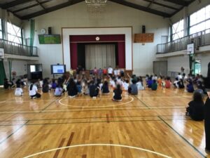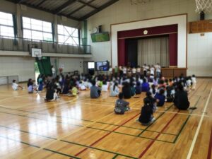 3つの委員会が活動内容やみんなに協力してほしいことなどを発表しました。クイズを入れたり、写真や動画で示したりして、わかりやすく伝える工夫をしていました。
