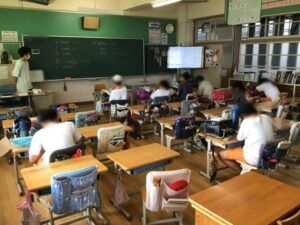 今日から「朝の学習」を始めました。学習係が指示をだして、プリントを配って・・・ 係の仕事もがんばっています。