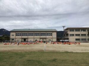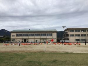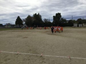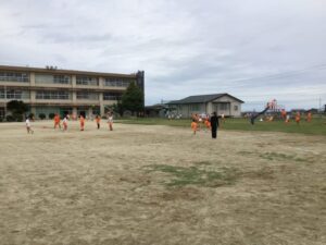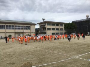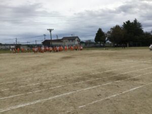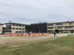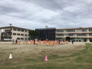 応援練習です。応援団がリードして、みんなで声をあわせています。