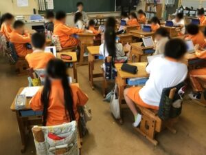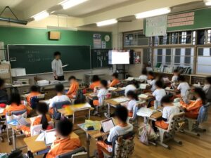授業の終わりにタブレットで復習をしていました。