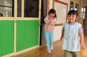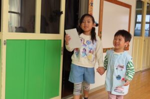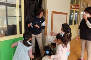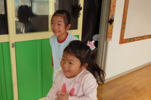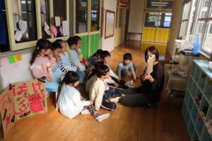 先生がなかなか出てこないと心配する子どもたち。おばけにつれていかれたのかな?出てきました。よかった。