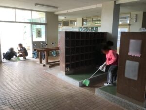 昨日は、5年生が運動会で土があがった昇降口や靴箱の掃除をしてくれました。