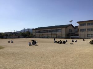 今日、6年生が運動場のポイント抜きをしてくれました。