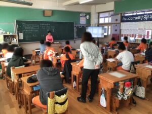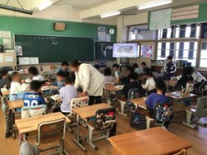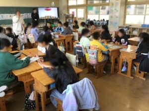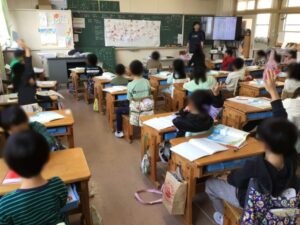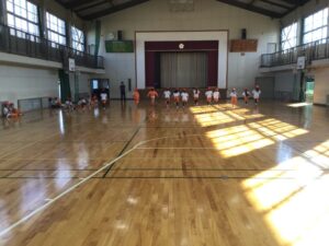 シャトルランをしています。走り終わった子どもたちから大声援です!