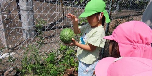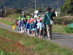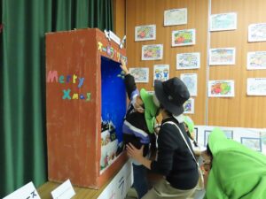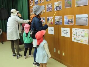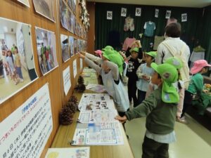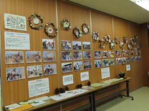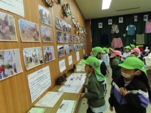 幼稚園のコーナーにはさつまいものつるで作ったリースが飾ってあります。