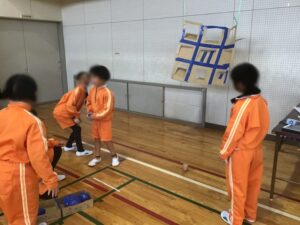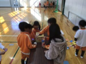 2年生が、グループでどんなおもちゃにするか話し合い、おもちゃ作りをしてきました。1年生を招待して「おもちゃランド」を開きました!