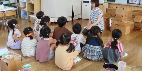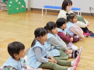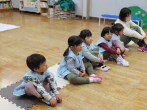 年長組の劇の活動を年中・年少組が見ています。