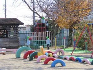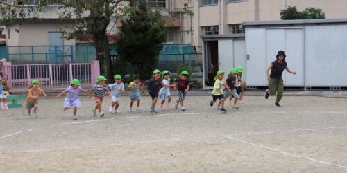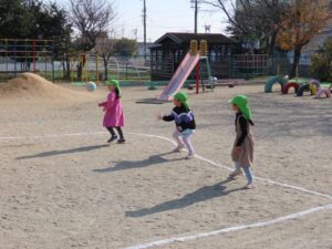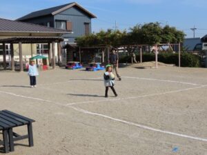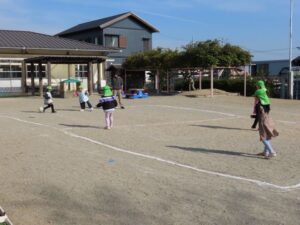年長組は劇の活動後、園庭で元気いっぱい遊びました。
