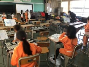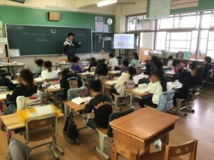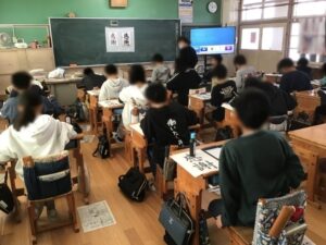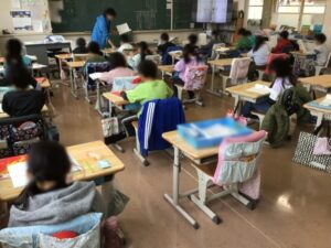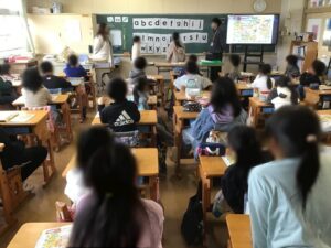 アルファベットの小文字の学習で、ペアでアクティビティをしています。