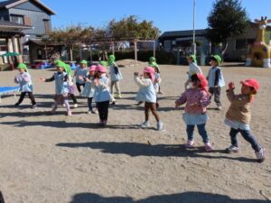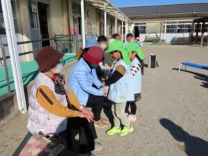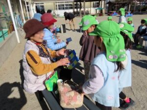 最後に年長組が作ったプレゼント『バック』を渡しました。バックの中にはお手紙とサンタの折り紙が入っています。
