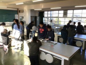 水の温度を変えて、塩やミョウバンの溶け方を確かめています。