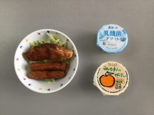 「さけのから揚げ」か「ポークウインナー」、「乳酸菌デザート」か「みかんゼリー」を選びました。