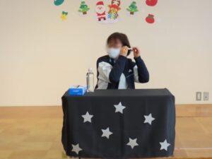 今日は楽しみにしていたクリスマス会。まず先生たちのマジックショーからです。