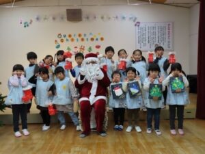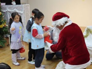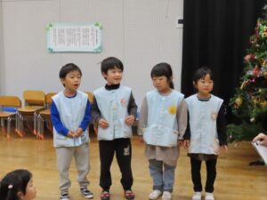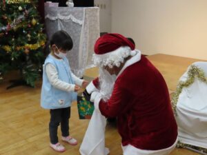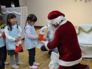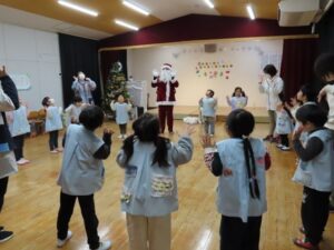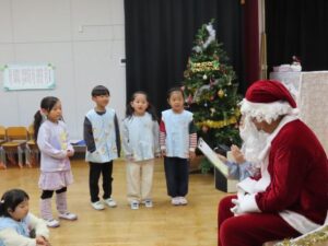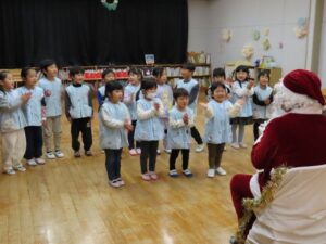 登場したサンタさんの前で『あわてんぼうのサンタクロース』を歌いました。
