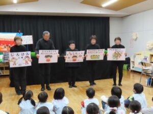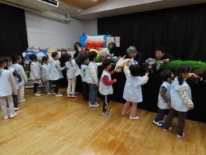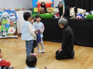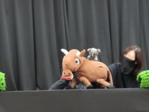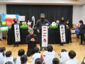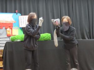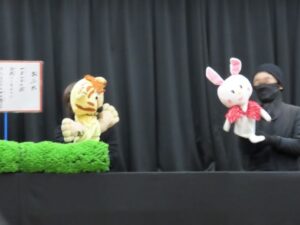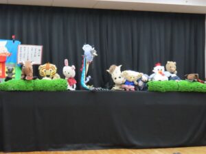 松阪人権擁護委員協議会「サンサングループ」の皆さんによる人形劇を鑑賞しました。お話は『十二支のはじまり』でした。
