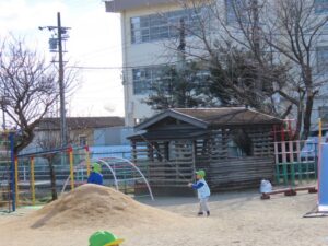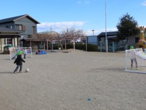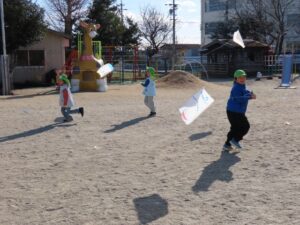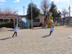 寒くても外で元気に遊んでいます。風が強かったので、たこあげにはうってつけの日でした。