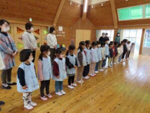 最後にみんなで集まって感想を交流しました。「すべりだいがたのしかったです。」