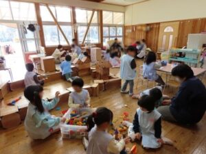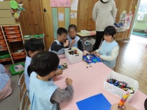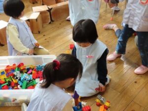 年中組ではブロックや食べ物屋さんごっこをしました。