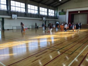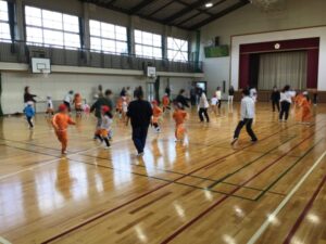 赤組・白組にわかれて、親子で3つのゲームを楽しみました。