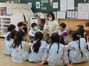 年長組が当番グループを新しく決めることになりました。どうやって決めるかの相談中。その後スムーズに決まりました。明日から新しいグループでの活動が始まります。