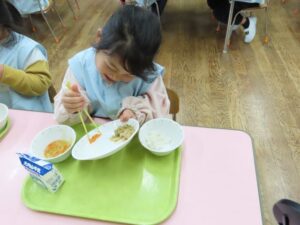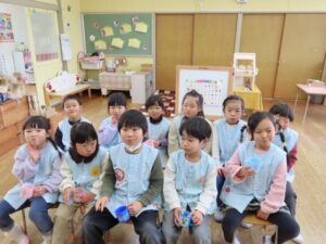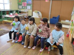 年中組は1月からフッ化物洗口が始まりました。上手に泡が作れるかな。