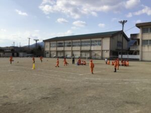 ラインサッカーをしています。今年度初めてですね。
