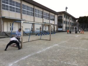 放課後、先生たちが2つめのサッカーゴールを立てました。