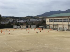 縄跳びのあと、サッカーをしました。