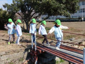 橋を渡りたいとの声があり、一人ずつ渡りました。慎重に恐る恐るわたる子、平気でどんどんわたっていく子・・・性格がわかりますね。