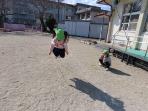 ホーム > 日々の活動の様子 / 伊勢寺幼稚園 今日の一コマ(2/18) 年長組は「コマ名人」に続き、短縄跳びに挑戦しています。 日を重ねるごとに跳べるようになっていきました。年中・年少組は鉄棒に挑戦! 「つばめ」ができるようになりましたよ。 今日もたくさん活動しています。 シェアする Twitter でシェア はてなブックマークに保存 LINE でシェア Facebook でシェア Pocket に保存 Feedly で購読 関連投稿 日々の活動の様子 / 伊勢寺幼稚園 人権人形劇(1/13) 日々の活動の様子 / 伊勢寺幼稚園 今日の一コマ(6/11) 日々の活動の様子 / 伊勢寺小学校 4月9日(水) 日々の活動の様子 / 伊勢寺幼稚園 えほんだね、最後のみずあそび(7/10) 日々の活動の様子 / 伊勢寺小学校 9月30日(火) 日々の活動の様子 / 伊勢寺小学校 修学旅行⑥ 前の投稿 2月17日(火) 次の投稿 作品展(2/16~18)