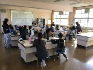 調理実習でお味噌汁とおにぎりを作りました。いりこでいい出汁がとれました!