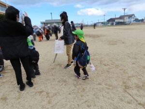 地区のお姉さん・お兄さんがやさしく声をかけてくれて、おうちの方が待つ場所まで元気に歩くことができました。