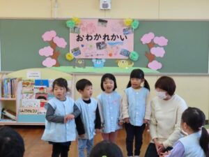 今日は、年中組が内容を考えた「おわかれ会」をしました。司会は年中組がしました。