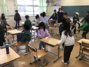 1・2年生の机・いすなどの移動は、4・5年生がお手伝いしてくれました。
