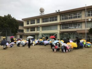 雨が降り始めていましたが、運動場に集まって一斉下校です。
