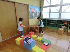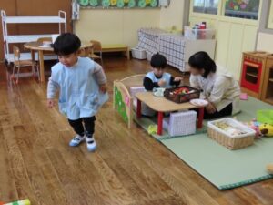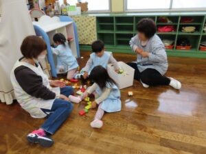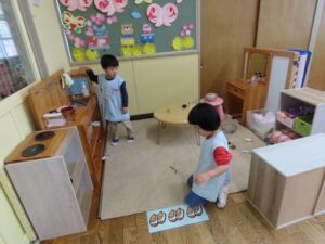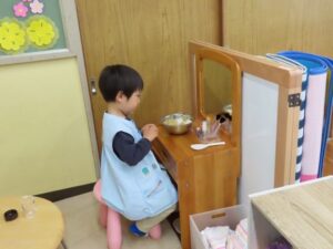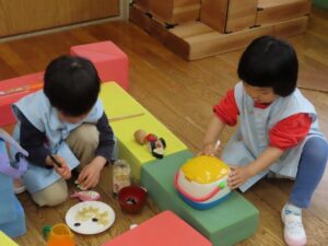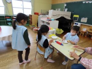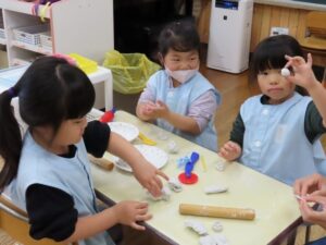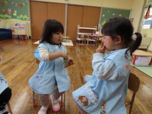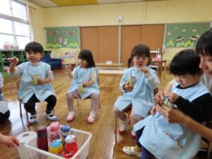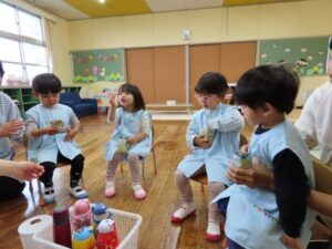 おやつタイム。今日のおやつは「アンパンマンのビスケット」です。
