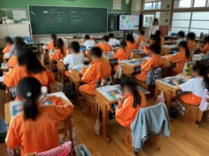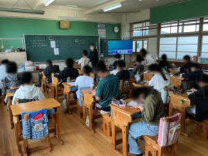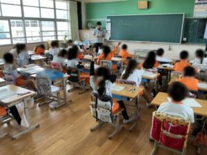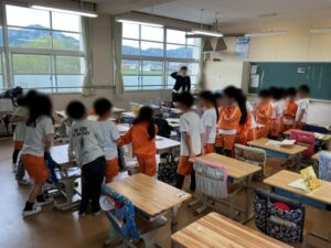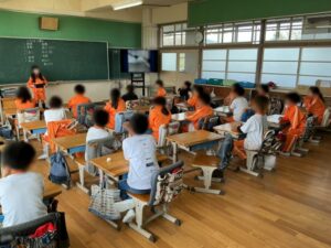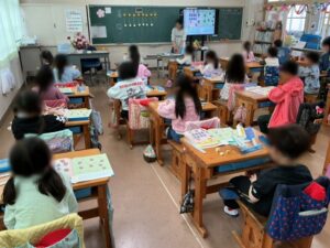 「じゅんばんに ならぼう」の学習で、いろいろな並び順で並んでいます。