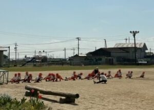 みんなで号令をかけながら準備体操をしています。