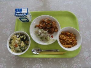 さて、今日の給食です。ご飯が作れないということで急遽「非常食の救給カレー」に変更になりました。